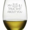 - Design details: Less prone to breakage than its stemmed counterparts, this 21-ounce stemless tumbler features a deeply sand etched design. The playful printed box offers a striking presentation for gift giving. Made and decorated in the USA.